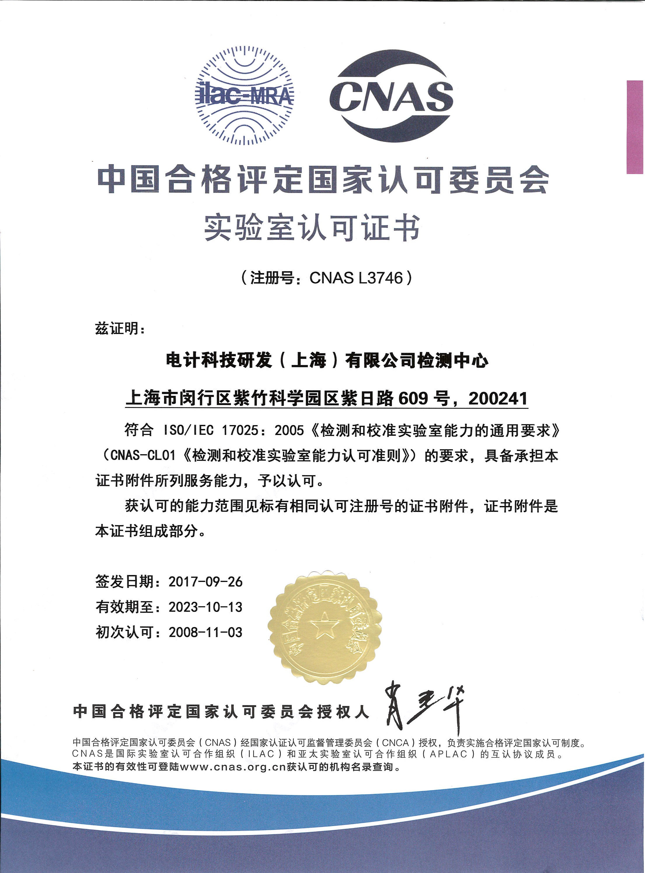 国家能力认可实验室 ISO/IEC 17025证书(中文)